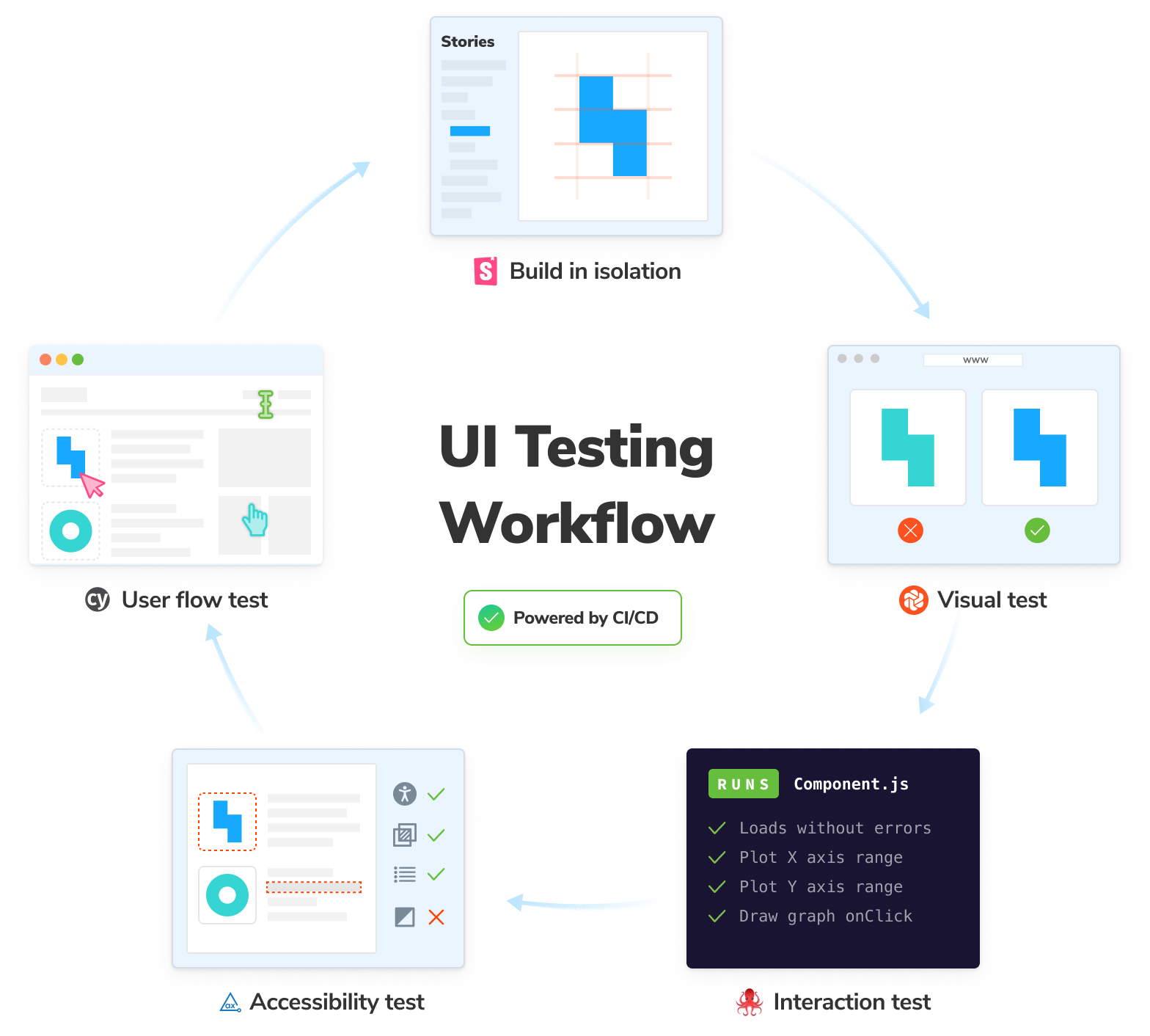 We've covered different aspects of UI that need testing but knowing how to combine them into a productive workflow is tricky. If you get it wrong, the UI development process feels like a slog. Your tests break whenever there's an implementation tweak. You have to duplicate test cases for every tool, and it all spirals into a maintenance nightmare.